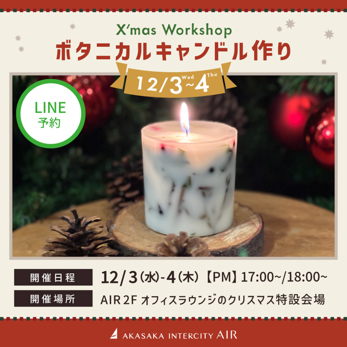 赤坂インターシティAIRでは、今年もクリスマスワークショップを開催いたします。