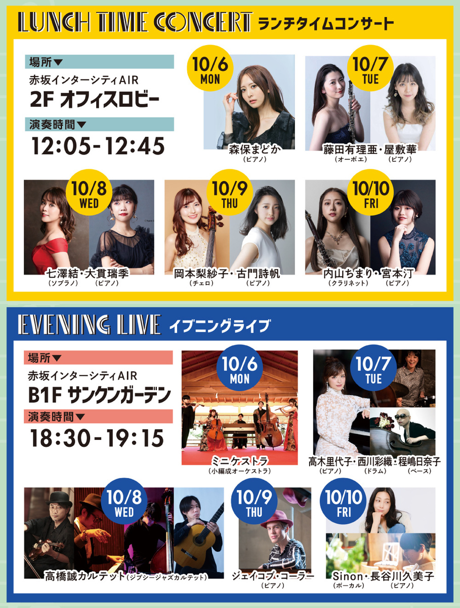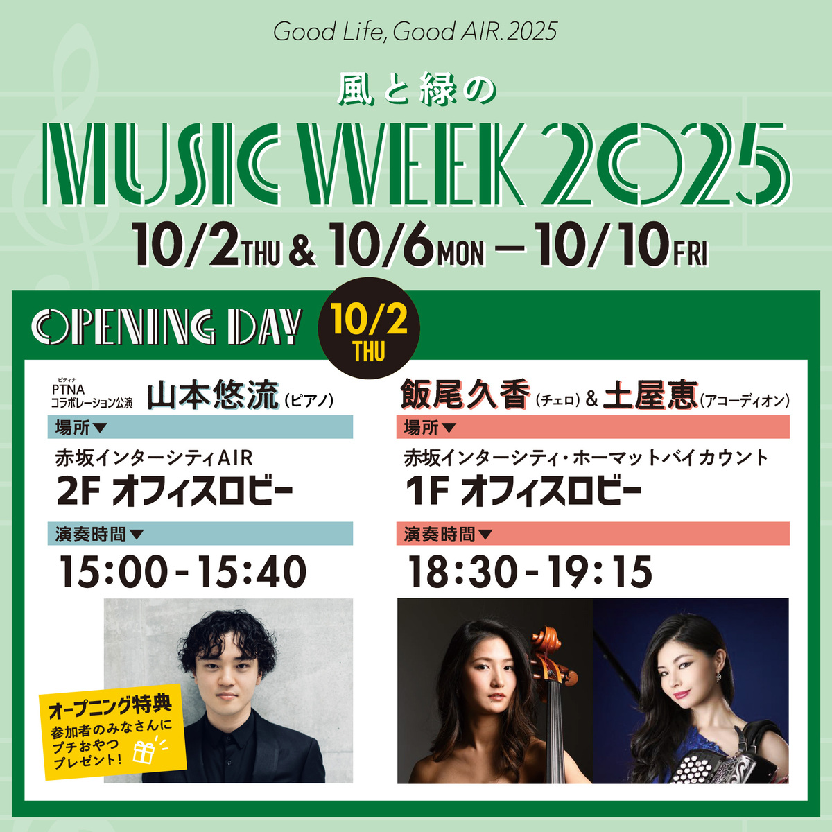 ARK Hills Music Week 2025の開催に伴い、赤坂インターシティAIRでは、音楽と共に過ごす至福のひとときをお届けします。