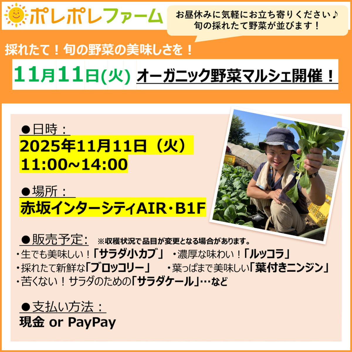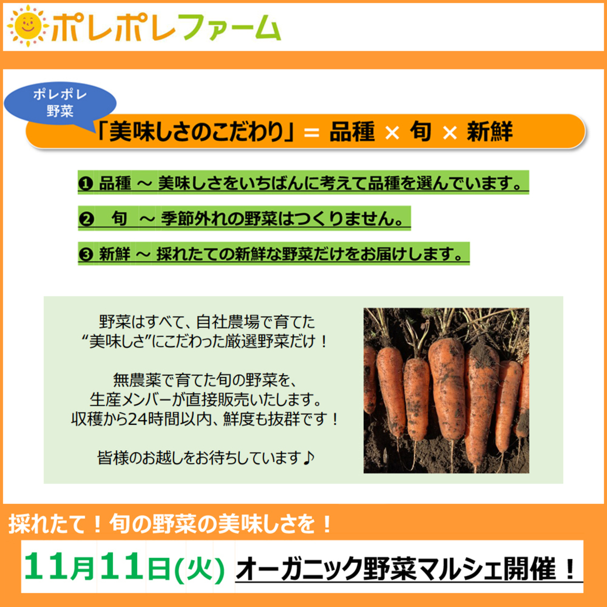 【ポレポレファーム 旬のこだわり野菜】11/11(火)開催!オーガニック野菜マルシェ開催♪